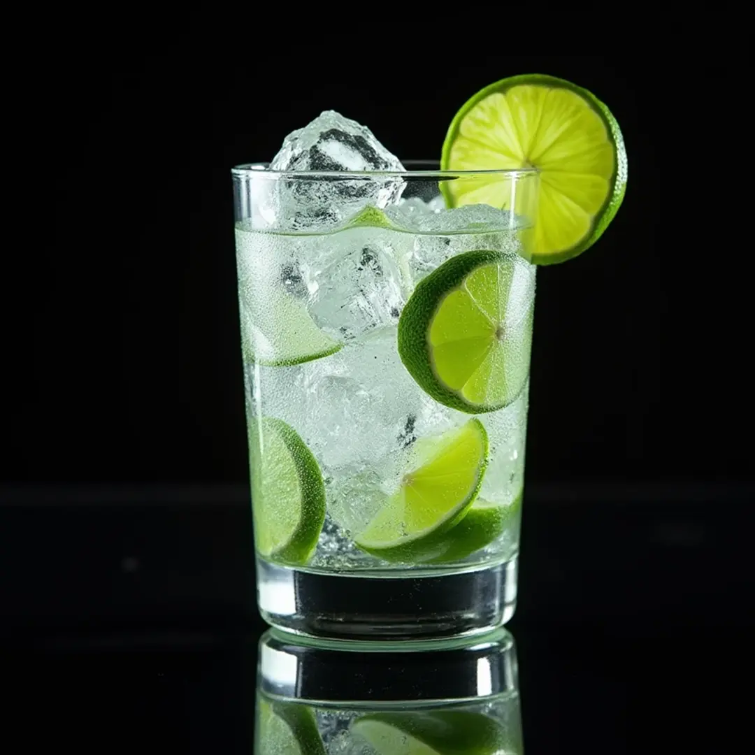 Patrón Silver, limón y menta sobre hielo con un toque de soda